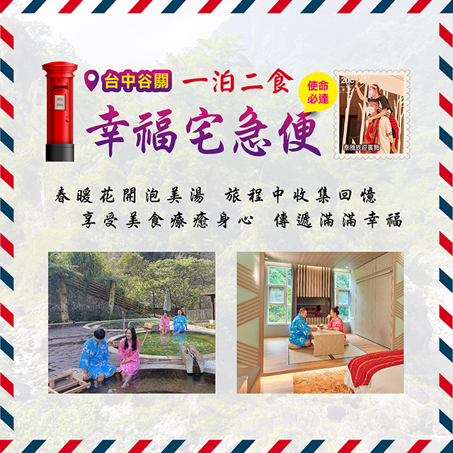 有多久沒有說出心底話,來到統一谷關,感受谷關的慢步調,2026/3/1~6/30入住體驗幸福宅急便專屬活動,春暖花開時泡美湯,在旅程中收集幸福,正視那個被忙碌遺忘的自己,在這趟旅程中放慢腳步,將一切好好地記錄在心底。