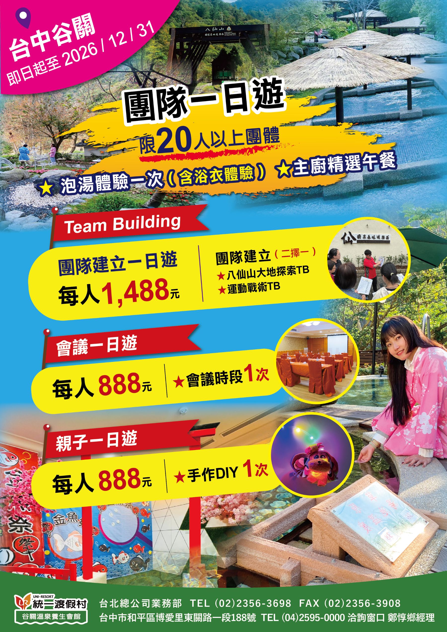 📣結合團體住宿、餐飲安排與多元活動設計,讓員工在放鬆之餘也能促進交流與互動。無論是部門旅遊、跨部門活動或企業年度員旅,都能依需求客製安排。