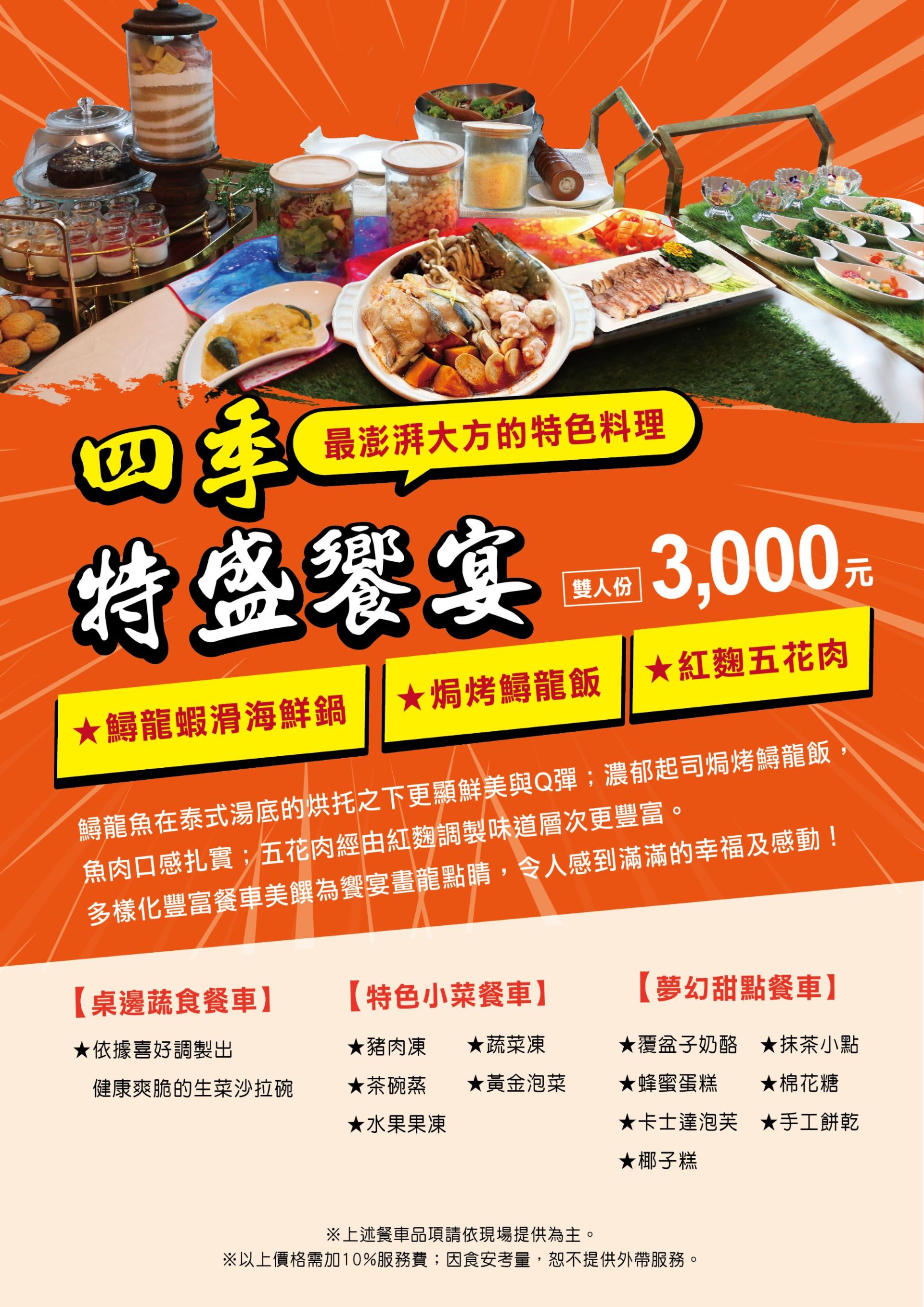 -主廚美饌→特盛饗宴+三台無限續吃餐車(3000元/雙人份)