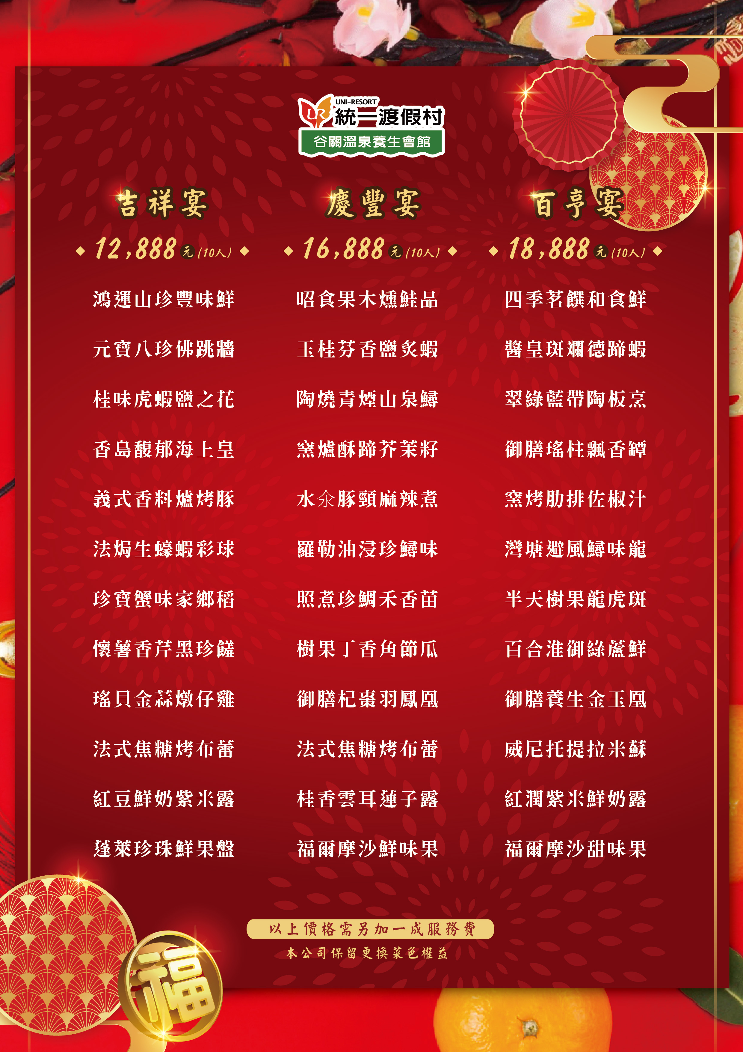 ⭐ 吉祥宴每桌12,888元 ⭐慶豐宴每桌16,888元 ⭐ 百亨宴每桌18,888元